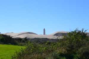 Dieser Leuchtturm ist deshalb besonders, da er von der Düne nach und nach „überrollt“ und damit verschüttet wird. Zu Beginn sowie Mitte des 20. Jahrhunderts wurde noch versucht, den Leuchtturm jedes Mal aufs neue frei zu graben, im Jahr 1968 gab man dies jedoch endgültig auf. Mittlerweile befindet sich die gesamte Düne unter Naturschutz, sie darf frei „wandern“, da alle Versuche, dem natürlichen Weg Einhalt zu gebieten, gescheitert waren. Es ist beeindruckend, welche „Kraft“ und Auswirkungen ein paar Sandkörner haben können, anbei ein paar Bilder: 🙂
