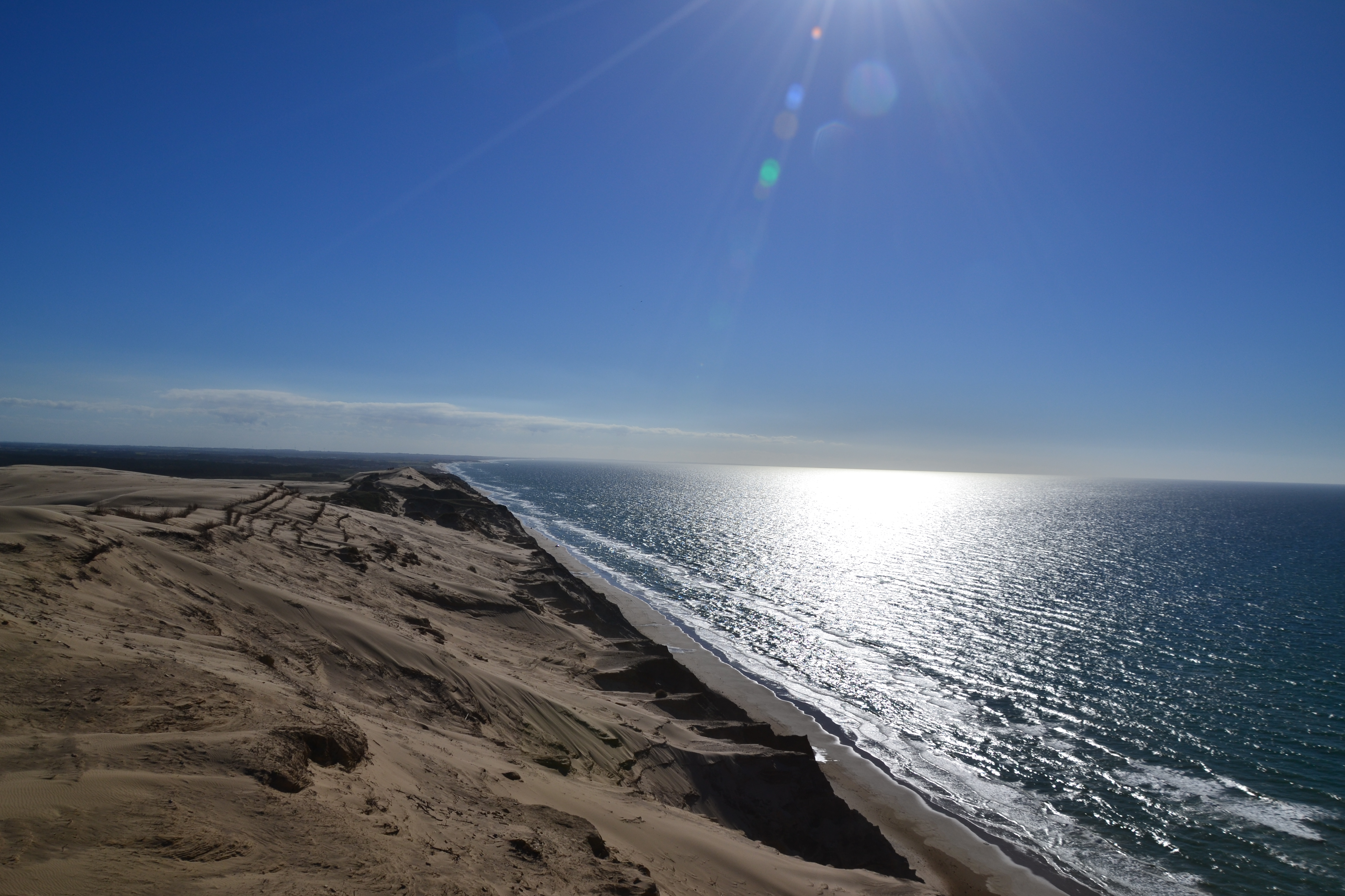 Am späten Abend ging es von zu Hause aus los, den langen Weg bis in den Norden Dänemarks. Da wir vor dem Abfahrt unserer Fähre nach Norwegen noch etwas Zeit hatten, nutzten wir diese und fuhren zur Wanderdüne „Rubjerg Knude“ und dem sich dort befindlichen Leuchtturm „Rubjerg Knude Fyr“. Vom Parkplatz aus läuft man etwa eine halbe Stunde und je näher man kommt, desto sandiger wird es. 🙂