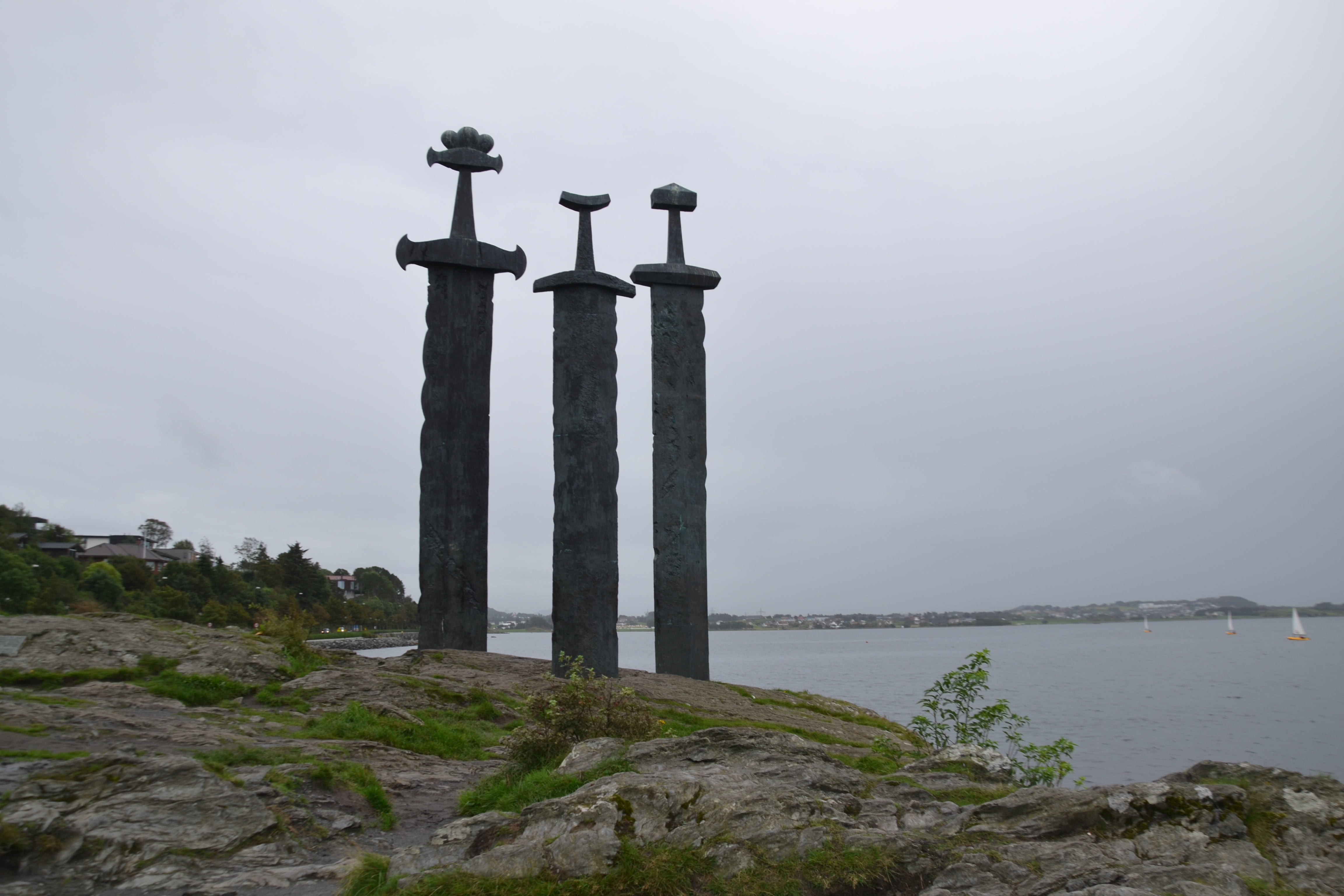 Direkt im Anschluss ging es in Richtung Stavanger und zur Sehenswürdigkeit „sverd i fjell“ also den Schwertern im Felsen. Die hatten wir 2015 nämlich tatsächlich vergessen – bei all den anderen Eindrücken zum Glück nicht so schlimm – dennoch wollte ich nun die Gelegenheit nutzen um mir dieses Denkmal anzuschauen. Es ist zwar beeindruckend, dennoch erwartet man es auf Grund der Bilder etwas größer als es tatsächlich ist. Wichtig, auch wieder in der heutigen Zeit, ist die Bedeutung des Denkmals, ein Symbol des Friedens: