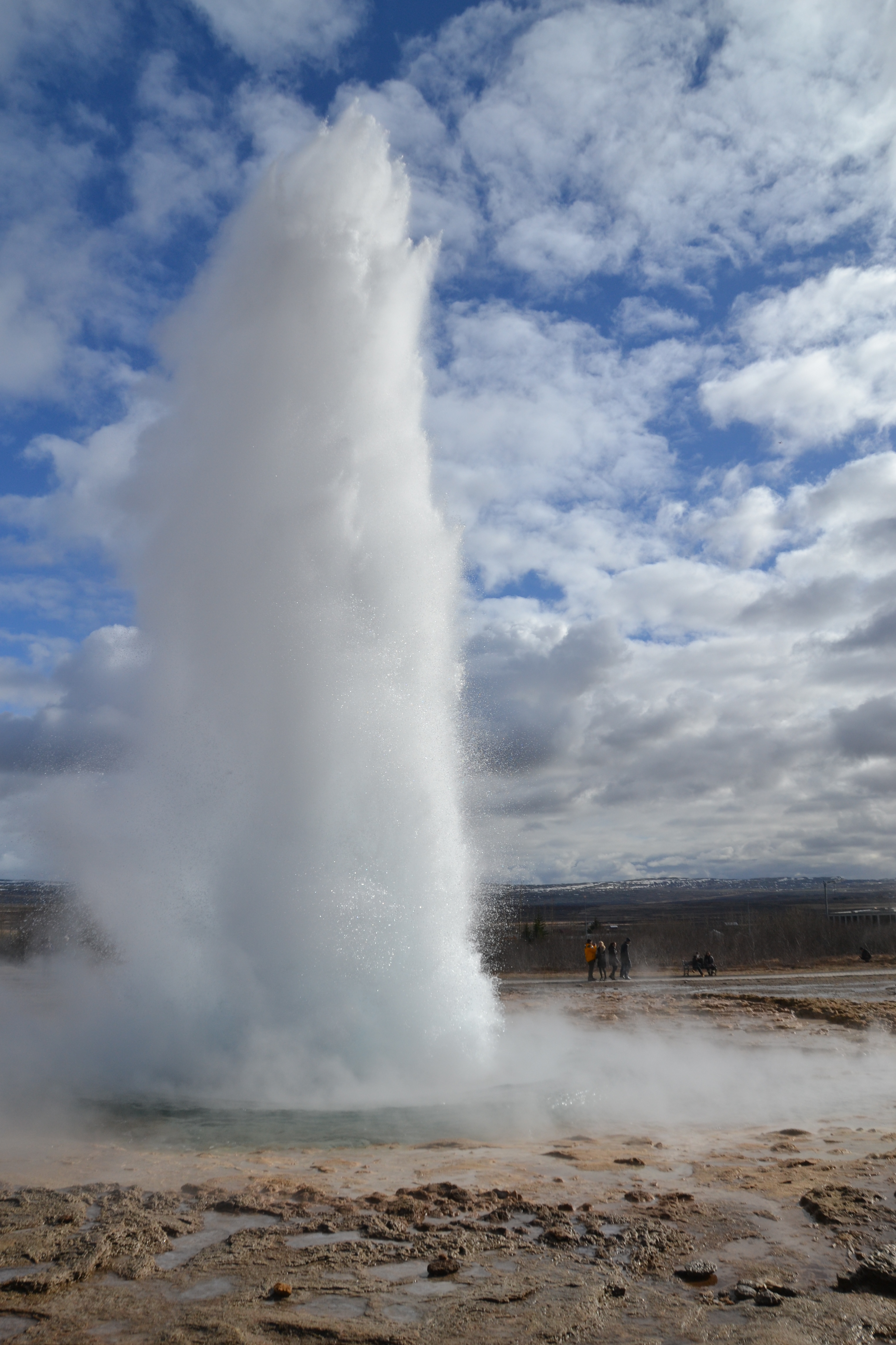 Anschließend ging es in das Gebiet Haukadalur, welches für seine geothermische Aktivität bekannt ist. Im Örtchen Geysir gibt es, bei dem Namen kaum verwunderlich, verschiedene Heißwasserfontänen zu bestaunen. Neben dem großen Geysir, welcher Namensgeber für alle Geysire weltweit ist, und einigen heißen Quellen zieht insbesondere der etwas kleinere Geysir Strokkur die Aufmerksamkeit auf sich. Etwa alle 10 min kann man dieses Schauspiel betrachten. Auch die nähere Umgebung ermöglichte schöne Fotomotive.