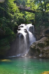 Unser erstes Ziel führte ins Soča-Tal. Bereits am frühen Morgen starteten wir mit der leichten und angenehmen Wanderung zum Slap Kozjak, einem felsendurchfließenden Wasserfall. Der Weg führte durch den Wald und am eiskalten Soča vorbei, was auf Grund der bereits am Vormittag steigenden Temperaturen (es war schließlich Sommer) sehr angenehm war. Wir waren wirklich begeistert von der Natur, zudem wir nahezu allein waren. Erst auf dem Rückweg kamen uns ein paar Leute entgegen.