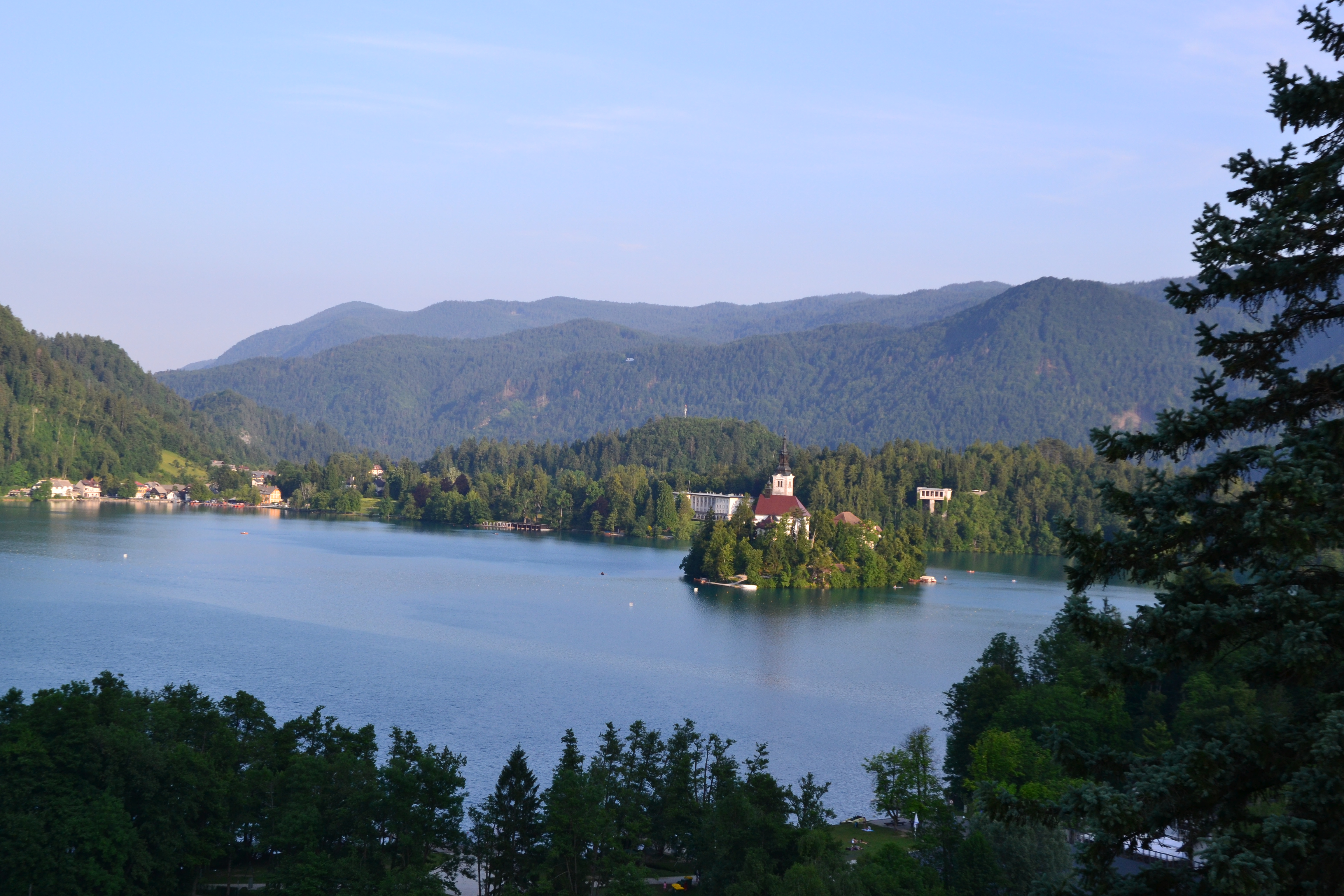 Am Nachmittag erreichten wir Bled, eine Ortschaft direkt am gleichnamigen See. Durch ein gratis Upgrade bekamen wir in unserem Hotel Triglav Bled ein Zimmer mit Balkon und Blick auf den See, was uns natürlich sehr freute. Nach dem Essen in einem lokalen Restaurant ließen wir den Abend entspannt am See ausklingen. Den See selbst konnten wir am kommenden Vormittag erkunden. Wir machten uns zu Fuß auf, den See einmal zu umrunden. Der Weg ist gut 6 km lang und damit eine sehr angenehme Strecke (meine Freundin nutzte diese auch zweimal zum joggen), wobei wir trotzdem zwischendurch anhielten, um eine der leckeren Bleder Cremeschnitten zu probieren.