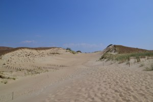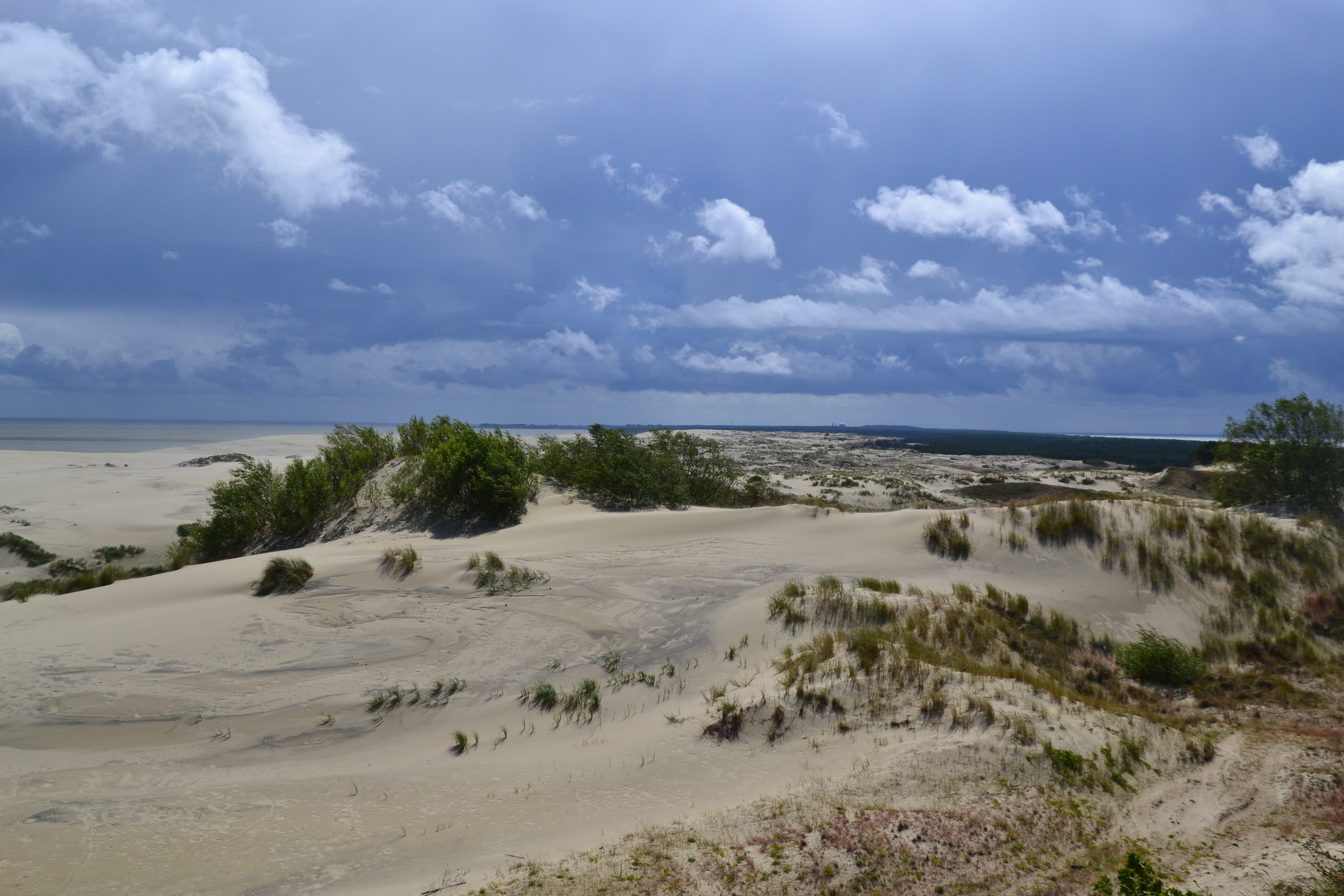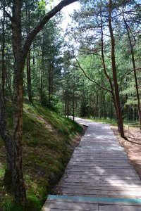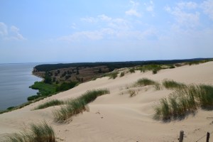 Tags darauf ging es mit einem kurzen und recht teuren Hüpfer mit der Fähre auf die Kurische Nehrung. Hier wird kurz nach Ankunft abkassiert, sage und schreibe 30 € mussten wir als Eintritt mit unserem Womo bezahlen, es war seit zwei Tagen „Hauptsaison“. Das erste Ziel auf der Kurischen Nehrung war eine Wanderung zur Düne Nagliu kopa, welche 60 m hoch ist. Auch hier mussten wir zuvor bezahlen, die 2 € pro Person sind jedoch verhältnismäßig gut investiert. Der Weg war schön und der Ausblick bei wunderbarem Wetter wirklich toll.