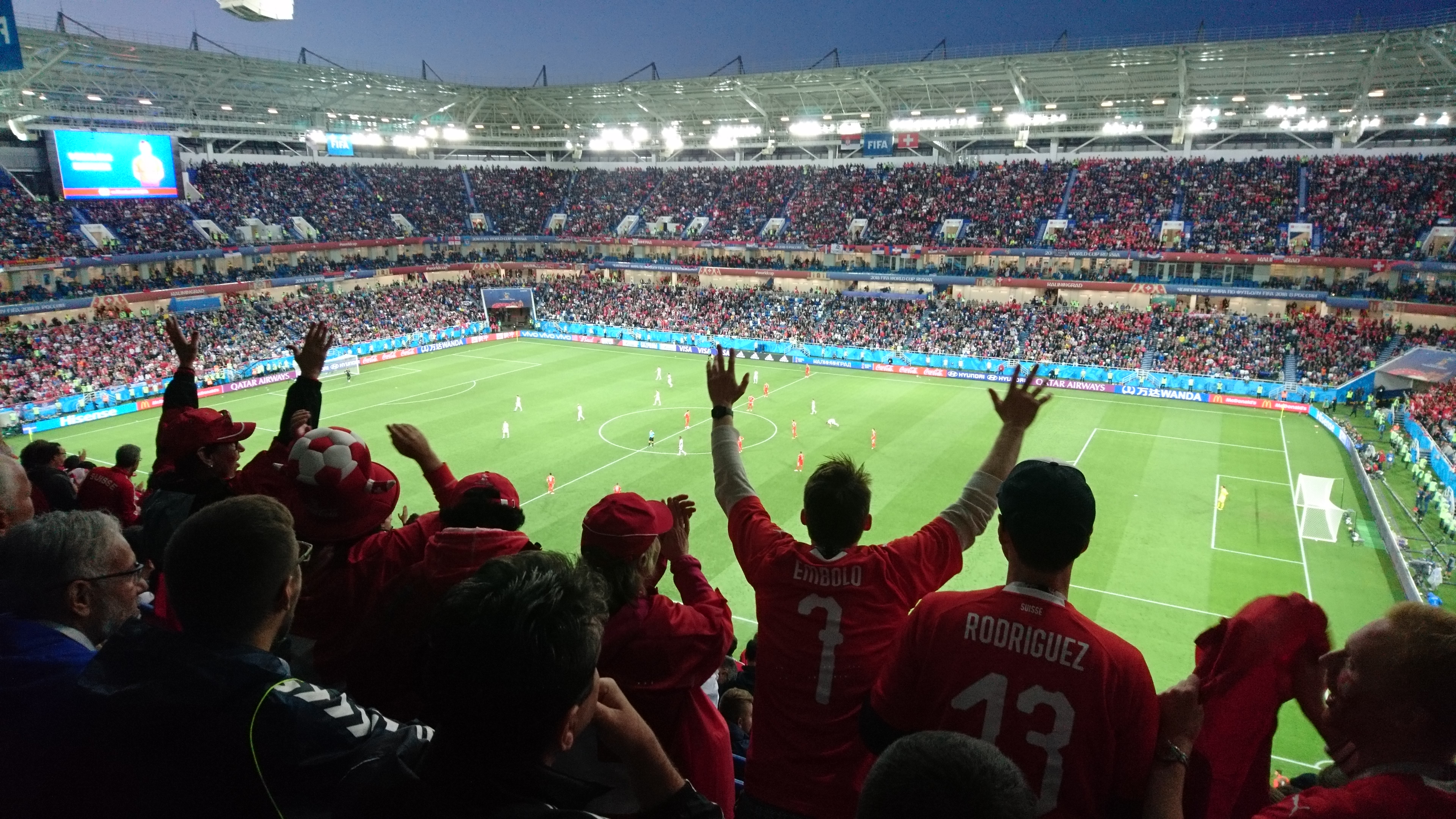 Von dort aus ging es mit dem Bus zum Stadion, das WM-Spiel Serbien-Schweiz stand auf der Agenda. Für die Tickets hatten wir uns vor allem als Visaersatz (Fan ID) beworben, das Spiel wollten wir natürlich dennoch nicht verpassen. Wir sympathisierten mit den Schweizern und erlebten ein spannendes und sehr sehenswertes Fußballspiel, welches die Schweiz mit einem Tor kurz vor Schluss mit 2:1 für sich entscheiden konnte.