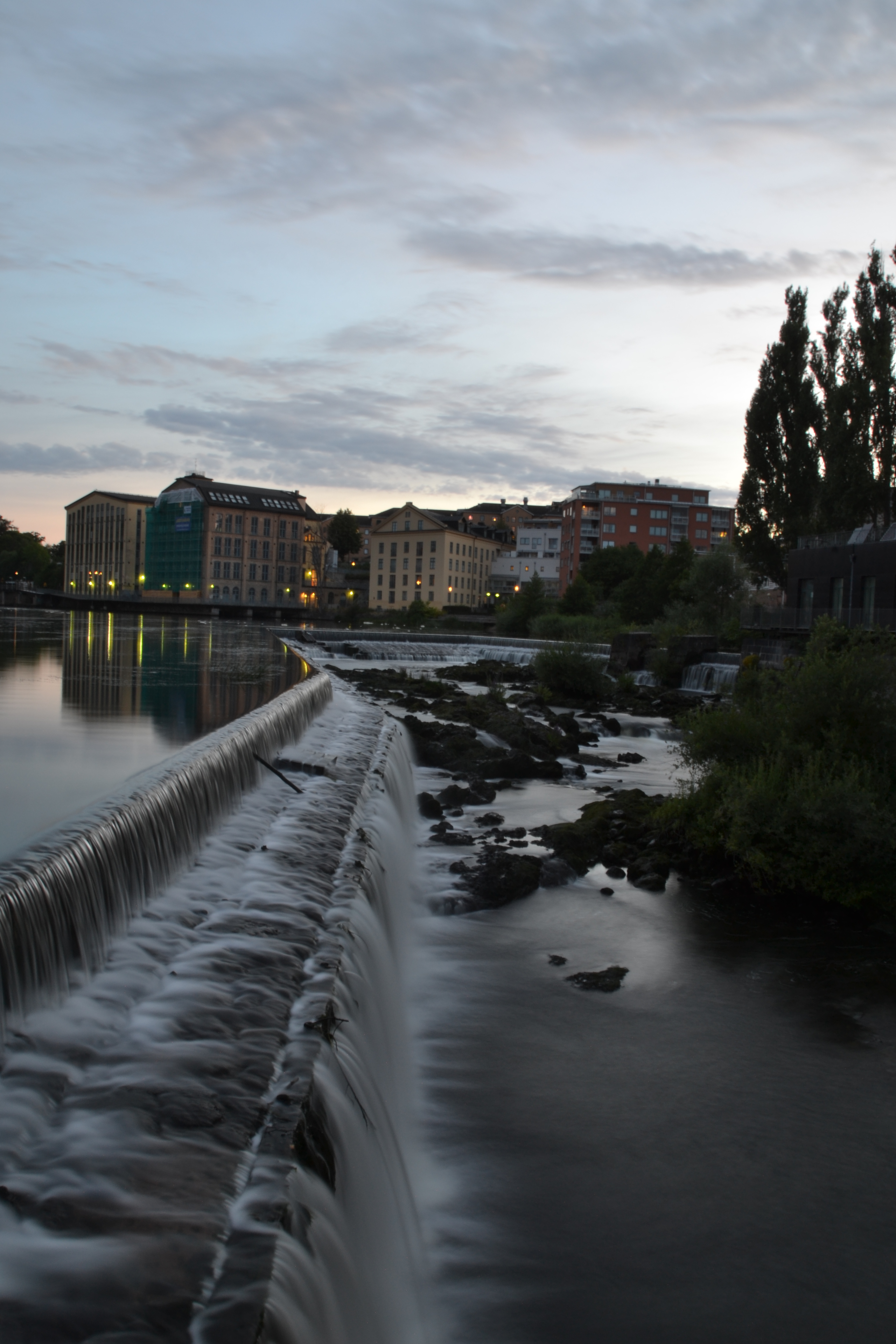 Wirklich viel Zeit hatten wir nicht eingeplant (ich komme sicher mal wieder) und so ging es bereits am selben Spätnachmittag ins etwa 160 km südwestlich gelegene Norrköping. Die Stadt bietet viele interessante Gebäude und wird gelegentlich sogar als „Freilichtmuseum der schwedischen Industriegeschichte“ bezeichnet, da es entsprechend viel zu entdecken gibt. Das berühmteste Gebäude ist das Museum der Arbeit, seine außergewöhnliche Form sowie die Lage am Wasser lädt zu wunderschönen Fotomotiven ein. Weitere interessante Gebäude gibt es rund um den kleinen Wasserfall des Flusses Motala ström, nur wenige Gehminuten vom Museum der Arbeit entfernt. Durch die stellenweise Beleuchtung am Abend ebenfalls ein schöner Anblick.