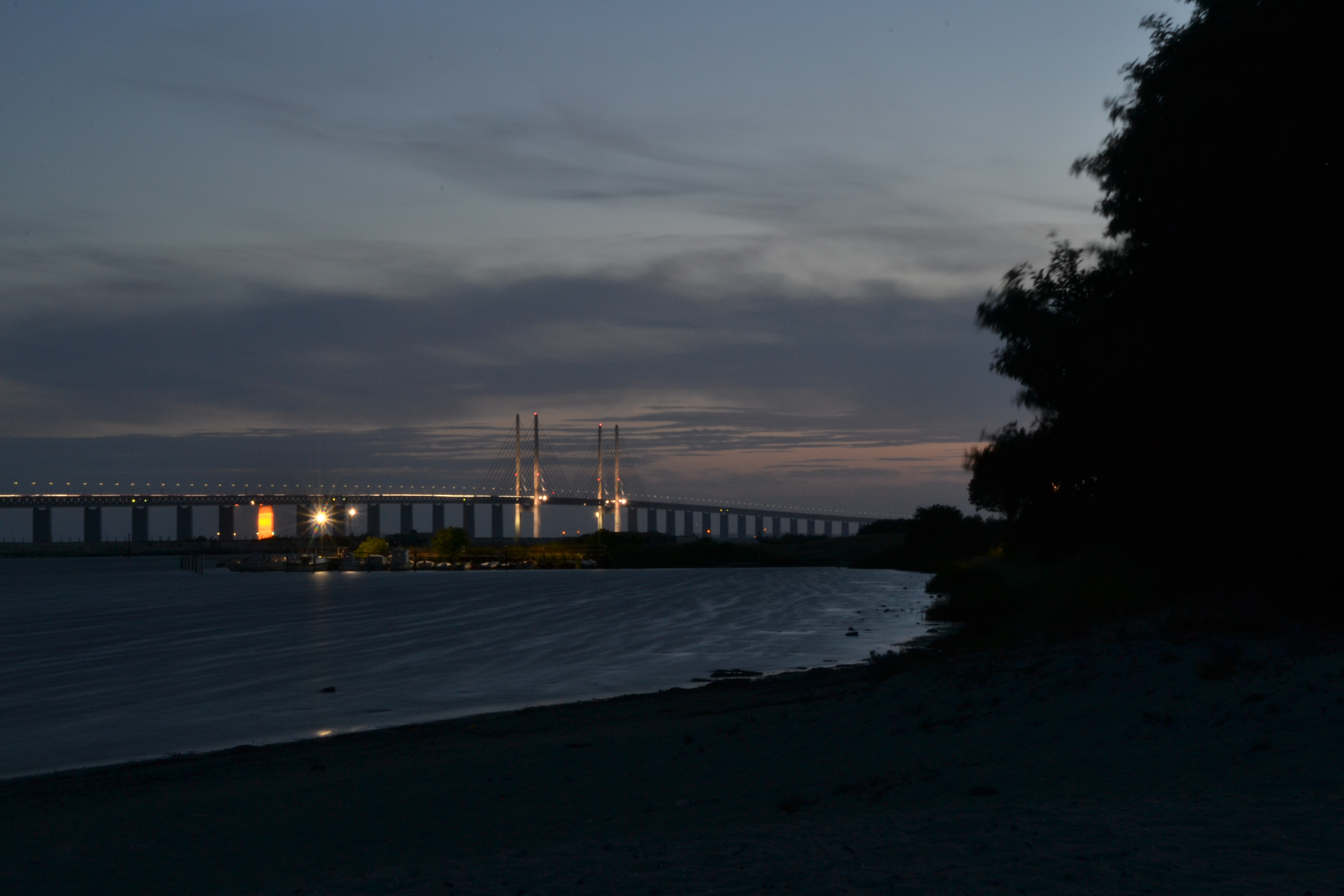 Am Abend führte unser Weg auf den einzigen Campingplatz Malmös, wo wir die Nacht vor unserer Rückfahrt verbringen wollten. Als einzigen Campingplatz in einer größeren Stadt hatten wir nicht vorab reserviert, was uns zum Verhängnis wurde: Voll! Nach kurzer Überlegung und unter Einsatz unseres Verhandlungsgeschicks konnten wir den Campingplatz zumindest nutzen, um zu duschen sowie uns um das Wohnmobil (Frischwasser, Abwasser, Toilette) zu kümmern. Die Nacht verbrachten wir letztendlich am Fährterminal. Zuvor nutzte ich jedoch die wunderbare Aussicht auf die Öresundbrücke für ein paar Fotos.