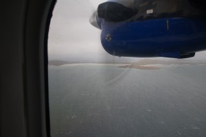 Der Flug, welcher die Idee meines mitreisenden Freundes war (der übrigens noch „flugverrückter“ ist als ich 😉 ), begann bereits interessant. Unser Flugzeug war eine DHC-6, genannt Twin Otter, welche Starts und Landungen auf sehr kurzen Bahnen ermöglicht – STOL ist der abgekürzte Fachbegriff. Unsere propellerbetriebene Twin Otter von Loganair hatte 18 Sitzplätze und relativ wenig Platz. Ich war zum ersten Mal in einer so kleinen Maschine und dementsprechend wackelig fühlte sich der Flug für mich zunächst an. Jedoch muss ich anmerken, dass ich mir dies zuvor deutlich schlimmer bzw. stärker vorgestellt hatte.