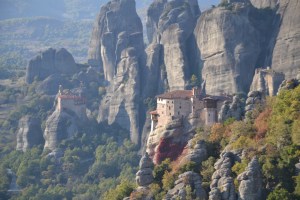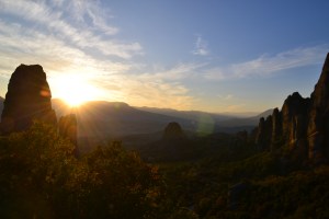 Ein Ausflug, je Richtung etwa zwei Stunden Autofahrt, führte uns zu den Meteora-Klöstern, welche auf den gleichnamigen Felsen erbaut wurden. Diese Klöster waren bereits Drehort eines James Bond Films (In tödlicher Mission bzw. For Your Eyes Only) und haben vor einiger Zeit Linkin Park dazu verleitet, ihr zweites Album nach den Felsen zu benennen. Wir fanden uns kurz vor Sonnenuntergang im weitläufigen Gebiet ein und konnten so die spektakuläre wie beeindruckende Szenerie beobachten.