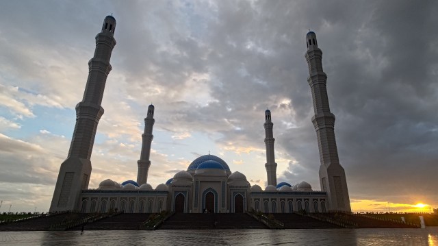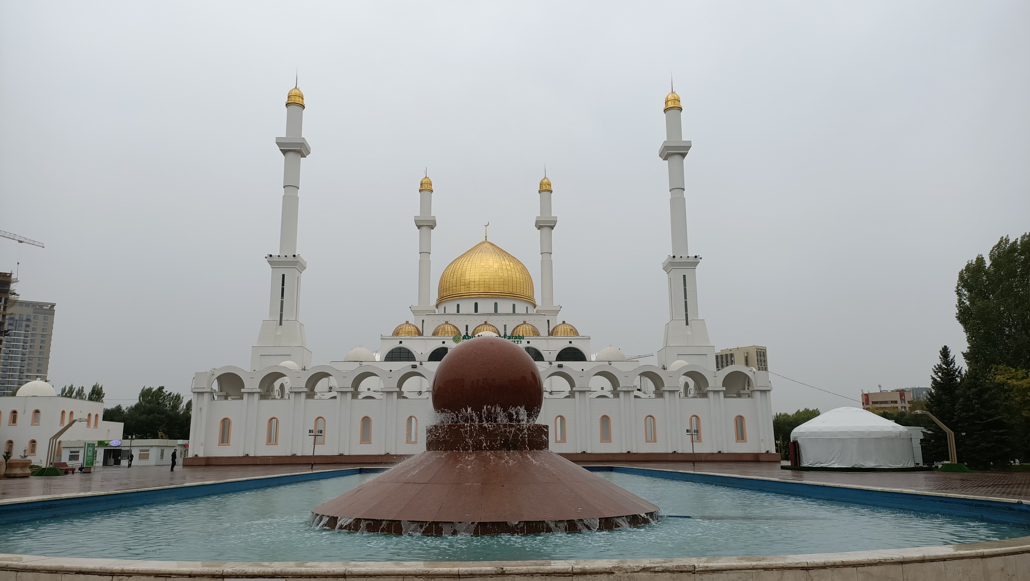 Eine weitere besondere Sehenswürdigkeit Astanas ist die große Moschee, welche im Jahr 2022 fertiggestellt wurde. Der Name ist dabei Programm, ich selbst habe noch keine größere gesehen. Alleine die drumherum hergerichtete Infrastruktur aus Zufahrten und Parkplätzen erinnert eher an ein riesiges Fußballstadion. Inklusive Außenbereich können bis zu 235.000 Gläubige Platz finden, womit diese Moschee nicht nur die größte in Zentralasien ist, sondern auch die siebtgrößte auf der Welt.