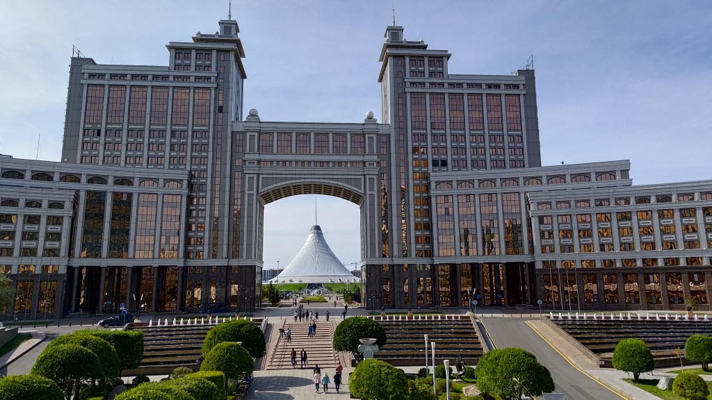 Nun aber zur eigentlichen Reise: Im Jahr 2023 war es endlich so weit, im September ging es nach Kasachstan. Die beste Reisezeit ist, je nach Angabe, von Mai bis September, wobei es im Sommer auch mal ziemlich heiß werden kann. Durch das kontinentale Klima sind Reisen im Winter eher nicht zu empfehlen, zweitstellige Minustemperaturen sind keine Seltenheit. Durch ein günstiges Angebot ging es in der Business-Class nach Astana, welches damit Start- und Endpunkt unserer Reise sein sollte. Das heutige Astana ist sehr modern, es ist im Wesentlichen eine „Planstadt“. Das Wachstum setzte erst ein, als Astana im Jahr 1997 zur neuen Hauptstadt ernannt wurde. Der ein oder andere wird Astana auch noch unter dem Namen „Nur-Sultan“ kennen, dies war die offizielle Bezeichnung zwischen 2019 und 2022. Der Name wurde zunächst zu Ehren des langjährigen Präsidenten Nursultan Nasarbajew vergeben, im Zuge einer Verfassungsänderung wieder rückgängig gemacht. Astana bedeutet im Kasachischen übrigens „Hauptstadt“.