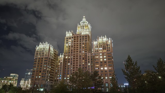 Von der Moschee aus ging es zum Abendessen wieder in die Innenstadt. Ebenfalls positiv zu erwähnen ist die Art der Beleuchtung der Gebäude am Abend. In vielen Städten wird hierbei durchaus übertrieben viel „Bling Bling“ zur Schau gestellt, in Astana habe ich die Beleuchtung als eher zurückhaltend aber stilvoll wahrgenommen, wie z.B. an folgendem Gebäude zu erkennen ist: